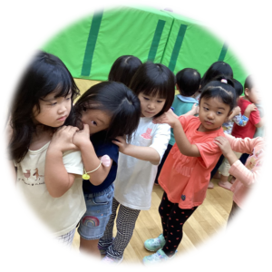 音楽やリズムに合わせて体を動かしながら、子どもたちの感性や表現力を育んでいきます。遊びの要素を取り入れながら、音楽に親しみ、のびのびと表現できる時間を大切にしていきます。